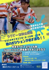 熊本ラグビースクール祭Supported By 肥後東ライオンズクラブを開催します!
